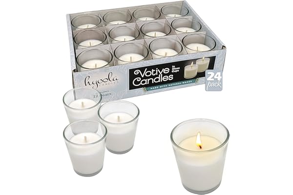 Pack of 24 Votive Candle - 12 Hour Burn Time - Unscented Votive Candles - Glass Votives