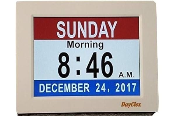DayClox Memory Loss Digital Calendar 5-Cycle Clock with Red White & Blue or Black & White Section Display