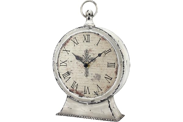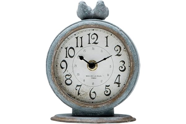Shabby Chic Vintage Shelf Desk Clock for Living Room Décor Fireplace Mantel, 4.75" x 2.5" x 6.12" Slate Grey