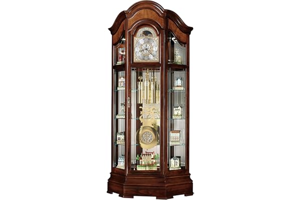 Large Windsor Cherry Curio Cabinet with Cable-Drive, Triple-Chime Movement with Volume Control