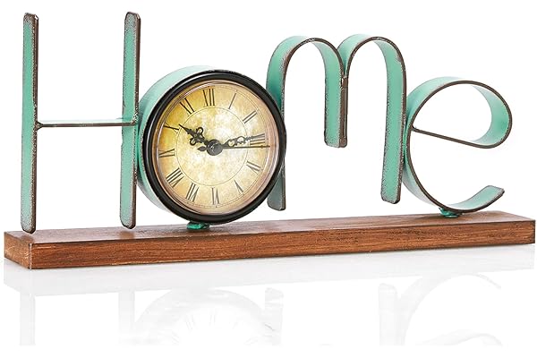 5.12" H Antique Metal Wood Clock Vintage Green Letter Home with Battery Operated Round Quartz Clock for Living Room Dining Room Bedroom Office (Home)