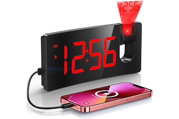 Digital Clock with 180° Rotatable Projector, 3-Level Brightness Dimmer, Clear LED Display, USB Charger, Progressive Volume, 9mins Snooze,12/24H, Digital Alarm Clock for Bedroom