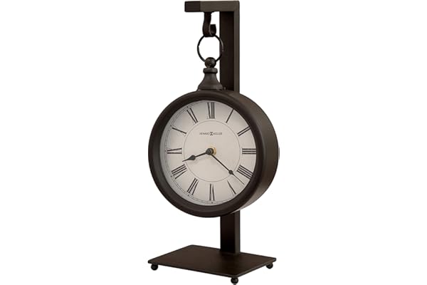 Metal Antique Black Finished, Rustic Clock Hangs on 14.25-inch Stand, Distressed Black Roman Numerals, Quartz Movement