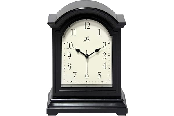Infinity Instruments Black Antique 9"" x 6"" Grandfather Mantle Tabletop Clock Mini Tesktop Table Mantel Decor Vintage Living Room Decor (20052BK-4434-AMZ)