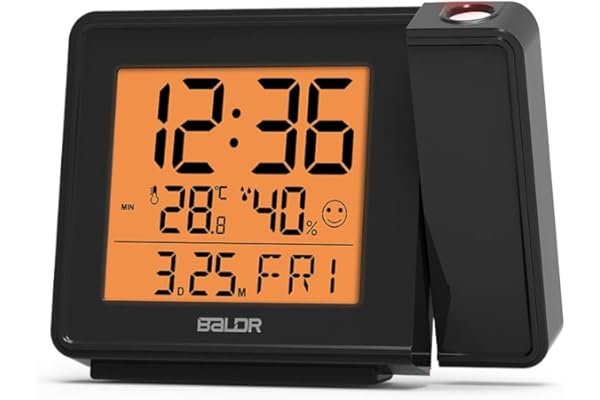 Jhua Digital Projection Alarm Clock Dimmable Alarm Clock with Indoor Temperature Hygrometer