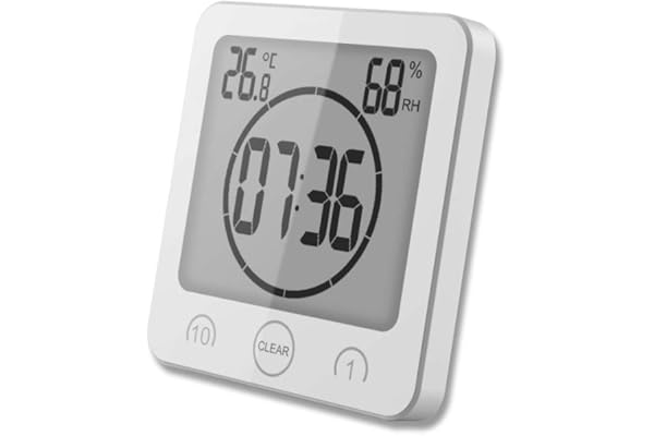 Waterproof for Water Spray, Humidity Temperature Display, Wall Clock Timer for Bathroom Shower Makeup Cooking (White)
