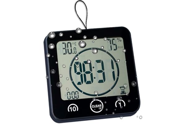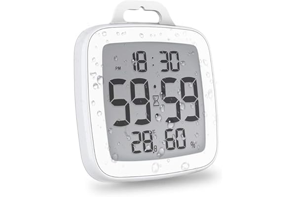 Bathroom Timer Clock, Digital Kitchen Wall Clock, Large LCD Display, 12/24 Hour Format, Indoor Temperature, Countdown Timer, Suction Cup Hanging Hole