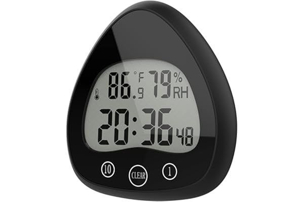 GGIENRUI Bathroom Shower Clock Digital Clock Timer Large LCD Display Touch Screen Timer with Temperature Humidity Display for Bathroom Shower Kitchen (White)