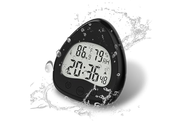 Shower Timer Shower Clock for Bathroom, Waterproof for Water Splashes, Small Digital Wall Clock with LCD Screen, Temperature Humidity, Suction Cup,Black