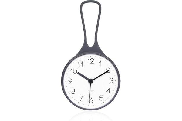 Shower Clock, Waterproof Shower Clock, Hanging Clock with Hook, Waterproof Shower Clock, Kitchen Clock, Non-Ticking Battery Operated (Gray)