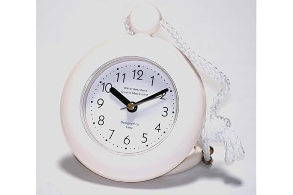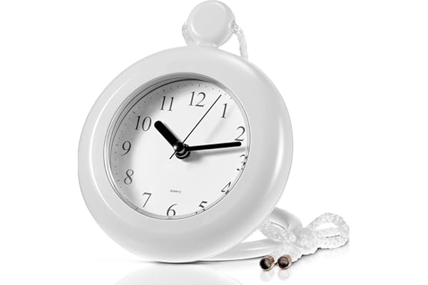 Our White Bathroom Shower Rope Clock with a Clear Easy to Read Clock face is Water-Resistant and Engineered with a Superior Quartz Movement and Turning Second Hand for Accurate timekeeping