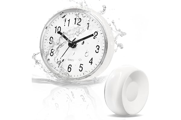 Silent, Water Proof, Battery Operated Clock for Toilet, Kitchen, Desk & Wall (White)