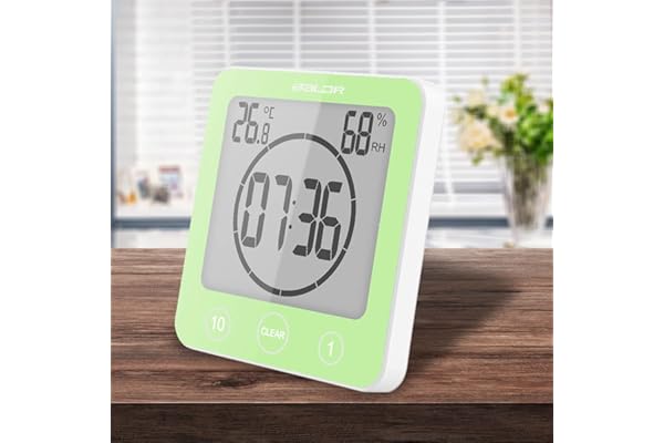 Waterproof for Water Splashes, Visual Countdown Timer, Time Management Tool, Indoor Temperature Humidity, Suction Cup, Hole Stand