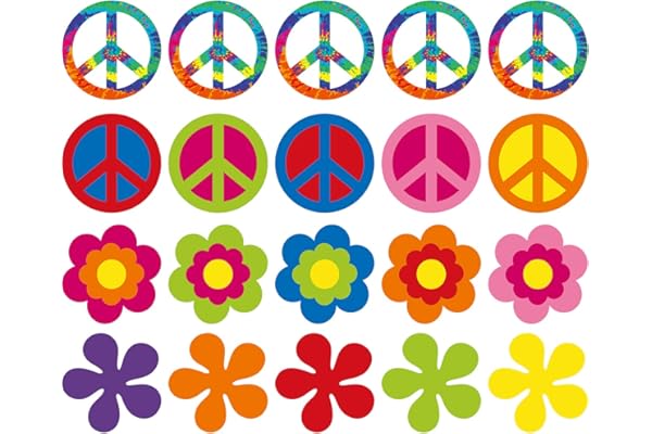 20 Pieces 60's Party Cutout 60's Groovy Party Cut-Outs Decoration Retro Flower Cutouts Peace Sign Cutouts with Glue Point Dots for 60’s Theme Party Decorations
