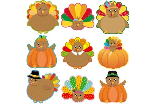 Turkey Cutouts 54 Pcs Thanksgiving Cut-Outs Fall Decor for Party Classroom Decoration