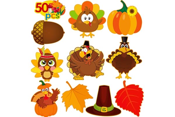 Joy Bang Thanksgiving Cutouts 50 PCS Turkey Fall Cutouts Pumpkin Maple Leaves Acorn Paper Cutouts for Classroom Bulletin Board Decorations
