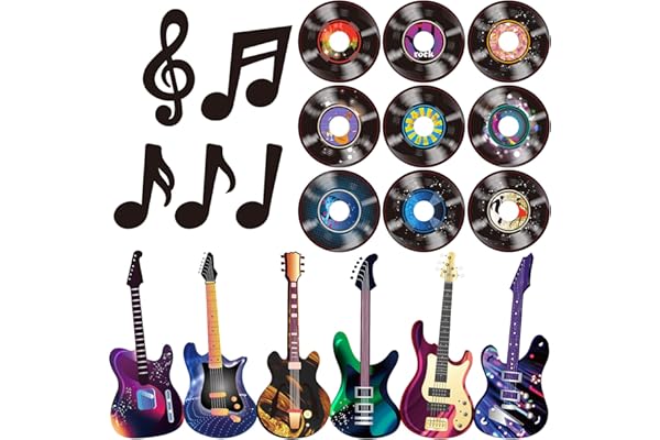 40 Pcs Music Party Decorations Musical Notes Rock and Roll Record Cutouts Silhouettes Record Cutouts Guitar Party Favor Cutouts 50s 80s Theme Party Baby Shower School Bulletin Board Craft Decoration