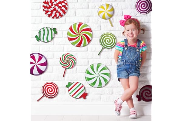 30 Pieces Christmas Candy Cutouts Peppermint Stickers Colorful Candies Round Lollipop Cutouts Candy Land Theme Xmas Candy Party Decor for Bulletin Board Decorations