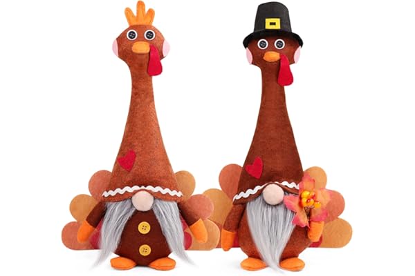 Mr and Mrs Turkey Couple Plush Tabletop Centerpieces for Fall Harvest Home Kitchen Shelf