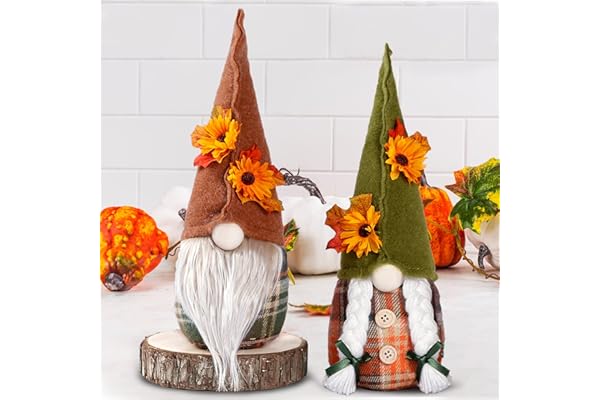 Sggvecsy Fall Gnome Autumn Gnomes Plush with Sunflower Maple Leaf Hat Handmade Scandinavian Tomte Nisse Buffalo Plaid Swedish Elf Dwarf for Thanksgiving Gift Harvest Home Table Ornament Set of 2