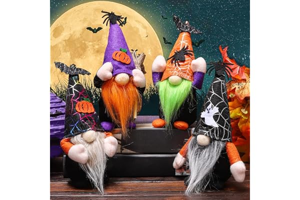 4Pcs Halloween Gnomes Plush Decor Handmade Pumpkin Bat Spider Ghost Halloween Themed Faceless Dwarf Elf Decoration for Halloween Party Home Decor Indoor