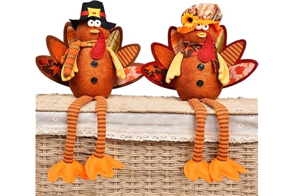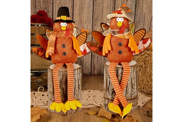 winemana Thanksgiving Decorations Set of 2 Turkeys with Dangling Legs