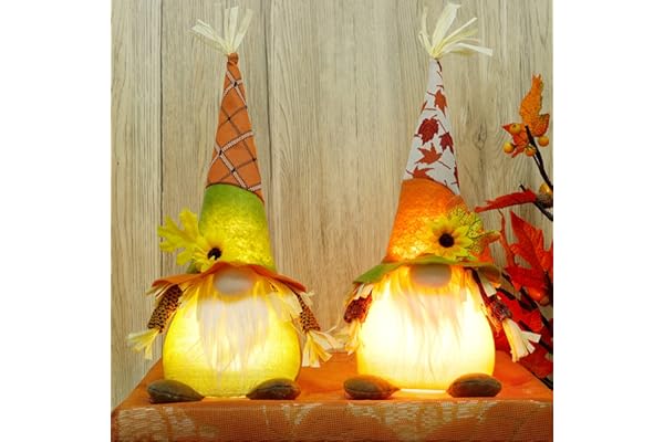 winemana Thanksgiving Decorations Set of 2 Gnomes with LED Lights