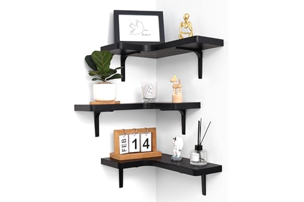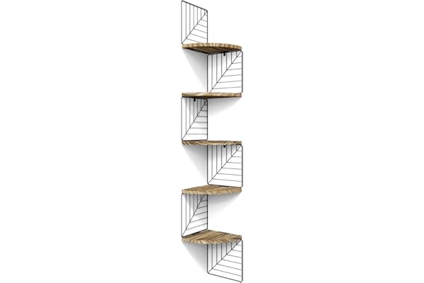 Love-KANKEI Corner Shelf Wall Mount of 5 Tier Rustic Wood Floating Shelves Wall Shelves for Bedroom Living Room Bathroom Kitchen Office and More Carbonized Black
