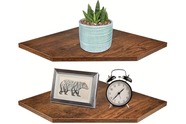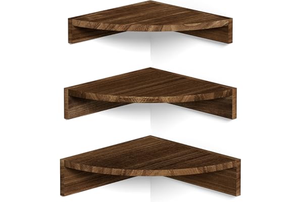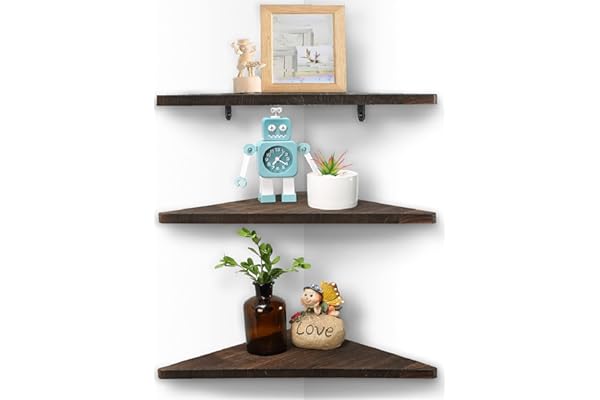 Floating Corner Shelves for Wall, Rustic Wood Wall Storage Display Shelves for Living Room Bedroom Bathroom Kitchen (Dark Brown)