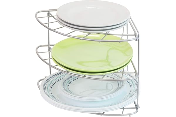 Countertop Organizer - Cabinet Corner Rack for Plate, 3-Tier Kitchen Shelf Storage Organizer - Cabinet & Pantry Kitchen Organization
