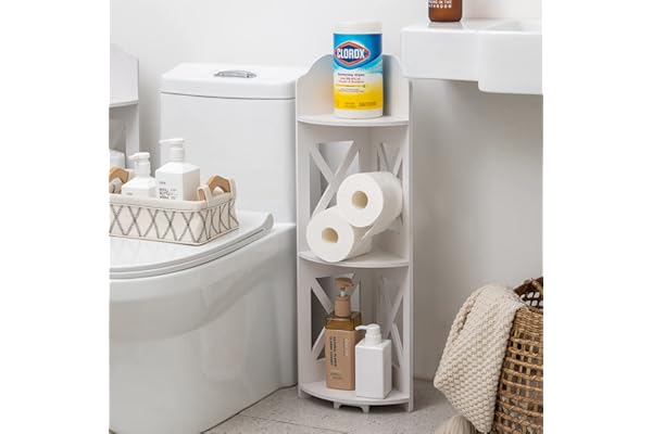 Corner Shelf Stand Great for Bathroom Storage Small Space,Toilet Paper Stand for Bathroom Organizer,Waterproof Bathroom Stand Fit for Toilet Paper Holder Storage, White by TuoxinEM