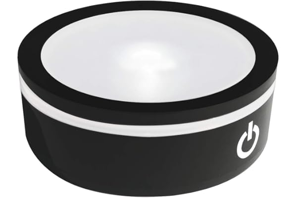 PHOSOK LED Black Display Base- Crystal Glass Art Statue Merchandise Display Stand-White Light Display Stand Powered by 3 AAA Batteries (Pack of 2)
