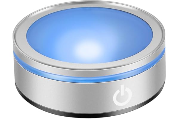 Spinning Display Stand with Colored Lights - Lighted LED Base for Glass Art with 4 Revolving & 8 Light Modes - Electric & Battery-Operated Platform - 5.1x1.2" (Rotating Display Stand)