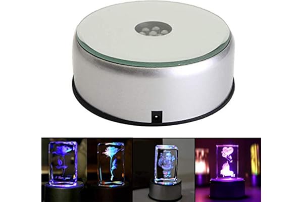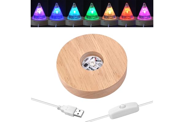 7 Colored Round Wooden Lighted Base Stand for Laser Crystal Glass Resin Art(it did not Come with a Control to Change The Lights)
