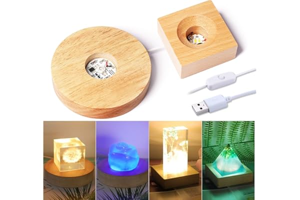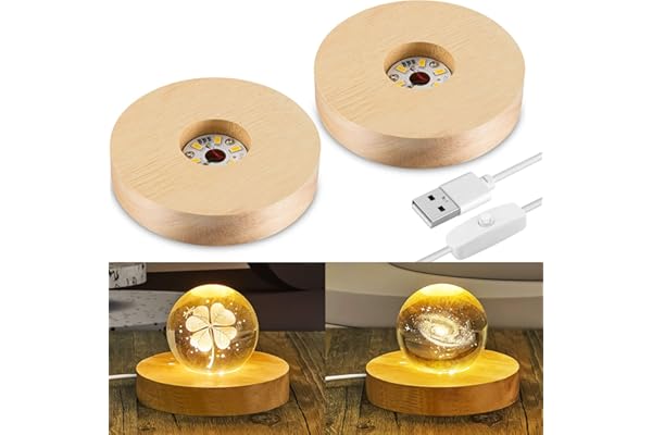 LED Lights Display Base LET'S RESIN 2PCS Wooden Lighted Base Stand for Laser Crystal Glass Resin Art