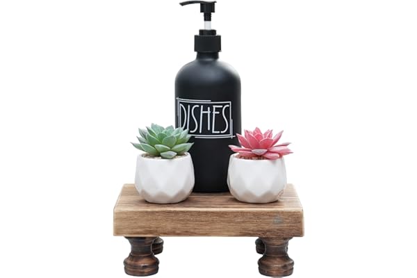 Delimux Farmhouse Wood Riser with 2 Artificial Succulent Plants Wooden Decorative Pedestal Stand Tray Displays Decorations for Rustic Home and Kitchen Decor (Brown)