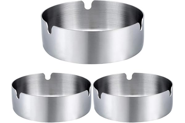 Pack of 3 Cigar Ashtray Tabletop Round Stainless Steel Ash Tray Suitable for Cigarette Ash Holder for Home