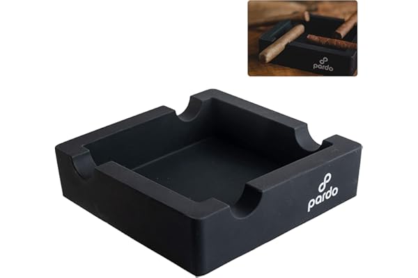 Silicone Ashtray for Large Ring Gauge Cigars with Built-in 4X Cigar Holder - Unbreakable Cigar Ashtrays for Patio - Black