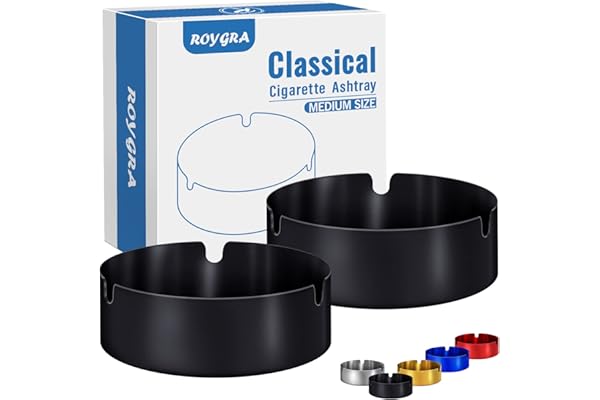 GUEVARA Cigar Ashtray Big Ashtrays for 8" Round Cigarettes Large Rest Outdoor Cigars Ashtray for Patio/Outside/Indoor Ashtray