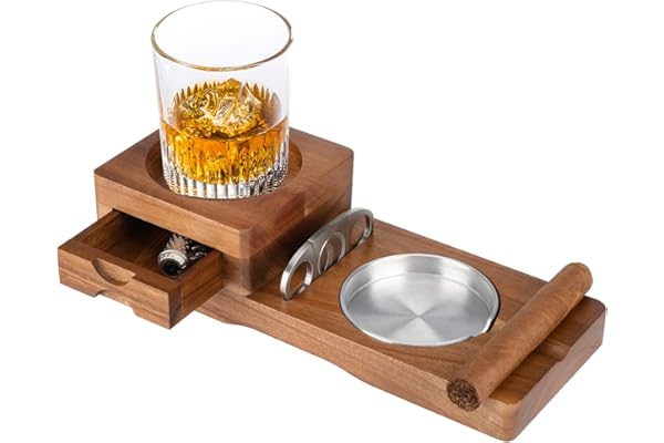 Scotte Cigar Ashtray Coaster Whiskey Glass Tray & Wooden Ash Tray with Cigar Cutter
