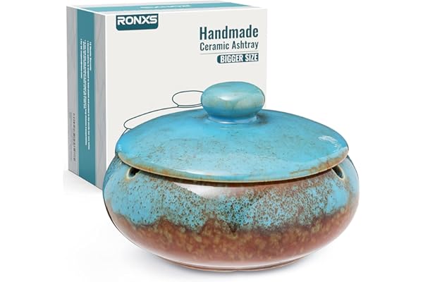Outdoor Ash tray for Patio with Lid, Windproof Ashtrays for Cigarettes, Handmade Ceramic Ashtray for Home Office Indoor Decoration