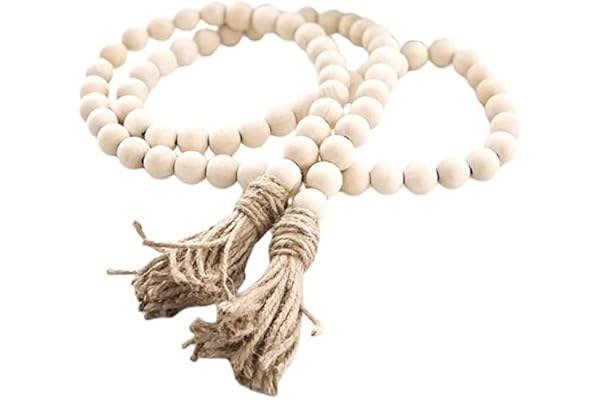 Farmhouse Beads 58in Wood Bead Garland with Tassels Rustic Country Decor Prayer Boho Beads Big Wall Hanging Decor