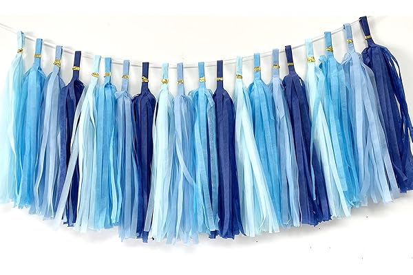 Tissue Paper Tassels Paper Tassels Garland Banner Table Decor Party Tassels Banner Wedding Birthday Baby Shower Nursey Party Decorations Supplies (20, Lt-Blue+Blue+Sky Blue+Royal Blue)