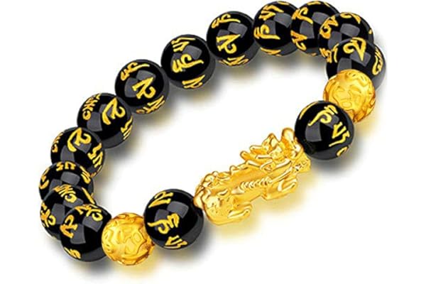 Feng Shui Black Obsidian Wealth Bracelet,Feng Shui Bracelet for Men/Women with Sagin Pixiu Character for Protection Can Bring Luck and Prosperity,Suitable for Any Occasion