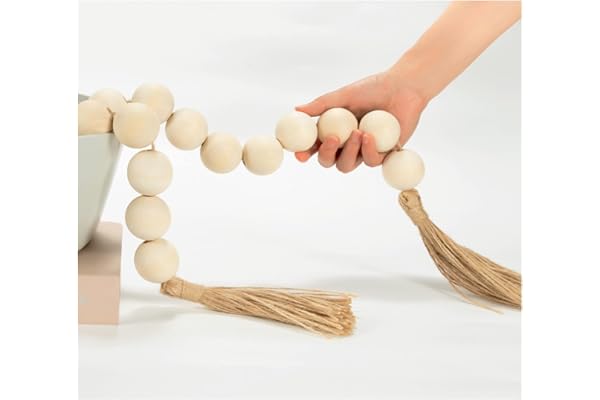 CXCC Wooden Beads Garland with Tassels 58in Farmhouse Beads Boho Beads Decor Entry Table Decor Christmas Tree Decor