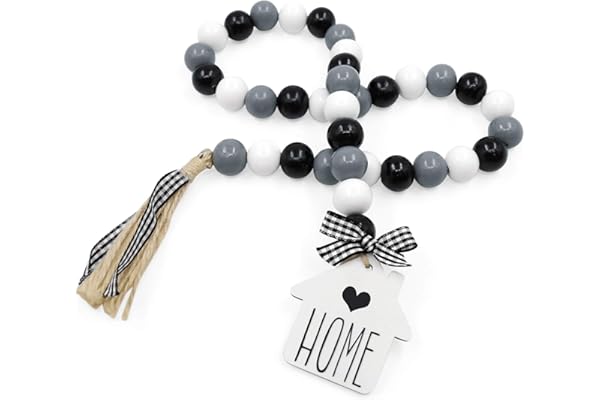 Wooden Beads with Tassel,Farmhouse Beads Rustic Prayer Beads Boho Beads for Farmhouse Tiered Tray Coffee Table Mantel Decor (1 Pack)
