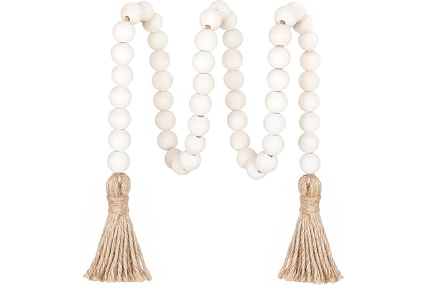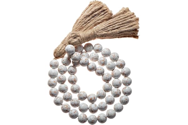 Meplait 39in Wood Bead Garland Farmhouse with Tassels