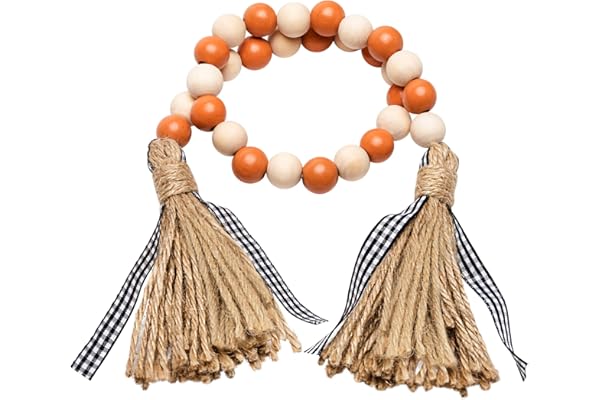 R HORSE Wood Bead Tassel Garland Thanksgiving Farmhouse Rustic Bead with Jute Rope Plaid Tassel Tray Decoration Retro Room Decor Home String Prayer Wall Décor for Nursery Room Vase Ornament