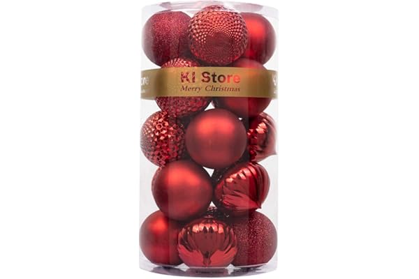 KI Store Red Christmas Balls 20pcs 3.15-Inch Christmas Tree Decoration Ornaments for Xmas Tree Holiday Wreath Garland Decor Ornaments Hooks Included