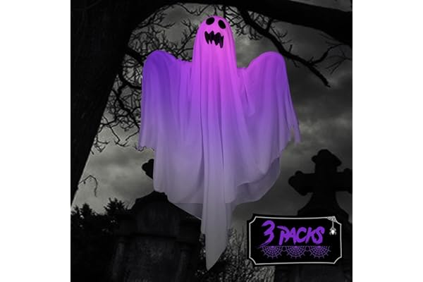 HOMELEX 3 PCS Cute Light Up Ghost Decorations Scary Halloween Decorations Hanging for Porch Trees